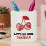 Looking for a thoughtful and practical present? The Personalised Cherry Make Up Brush Holder is a delightful choice for anyone who loves makeup. With its cheerful disco cherry design, this holder brightens up any dressing table while keeping brushes neatly organised.