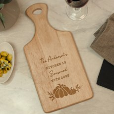 Looking for a unique way to celebrate autumn or surprise someone special? Our Personalised Pumpkin Paddle Chopping Board is the ideal choice. With a charming pumpkin design, it adds warmth and character to any kitchen.